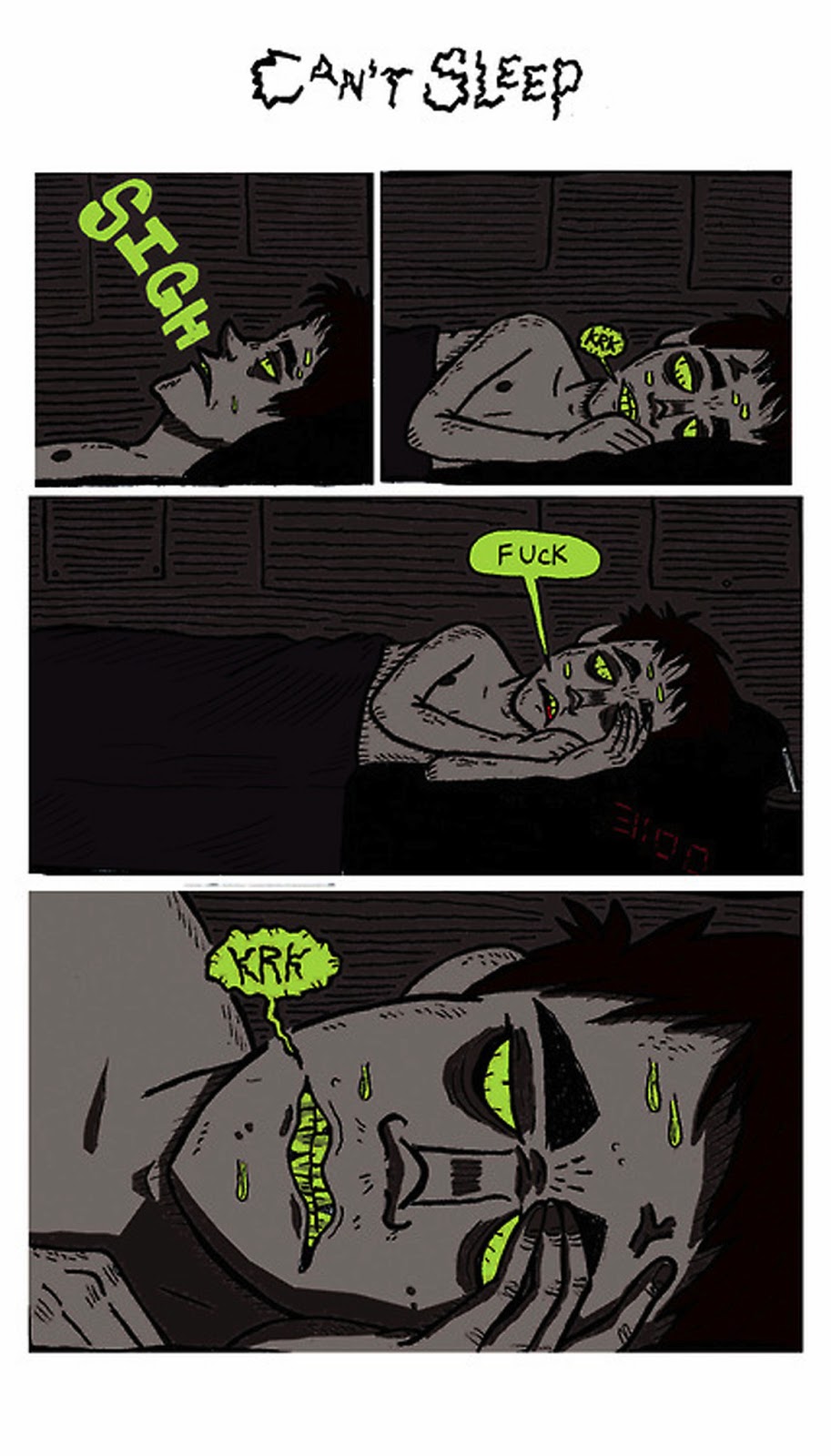 Sometimes this happens to me. Not being able to fall asleep is the worst. Apologies for the poor quality. Don't have the original. Bummer mountain.